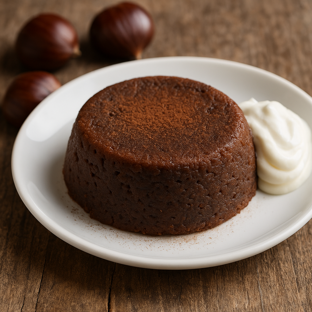 Il Tortino di castagne del Cilento è un dolce autunnale ricco e avvolgente, preparato con castagne lessate e passate, cacao amaro, zucchero e un tocco di liquore aromatico (come il rum o l’anice). La consistenza è morbida e compatta, quasi cremosa, spesso servito a fette o in formato monoporzione, accompagnato da panna fresca montata o miele del Cilento, come quello di castagno o di corbezzolo. È un dolce rustico ma elegante, perfetto per esaltare i sapori del territorio.