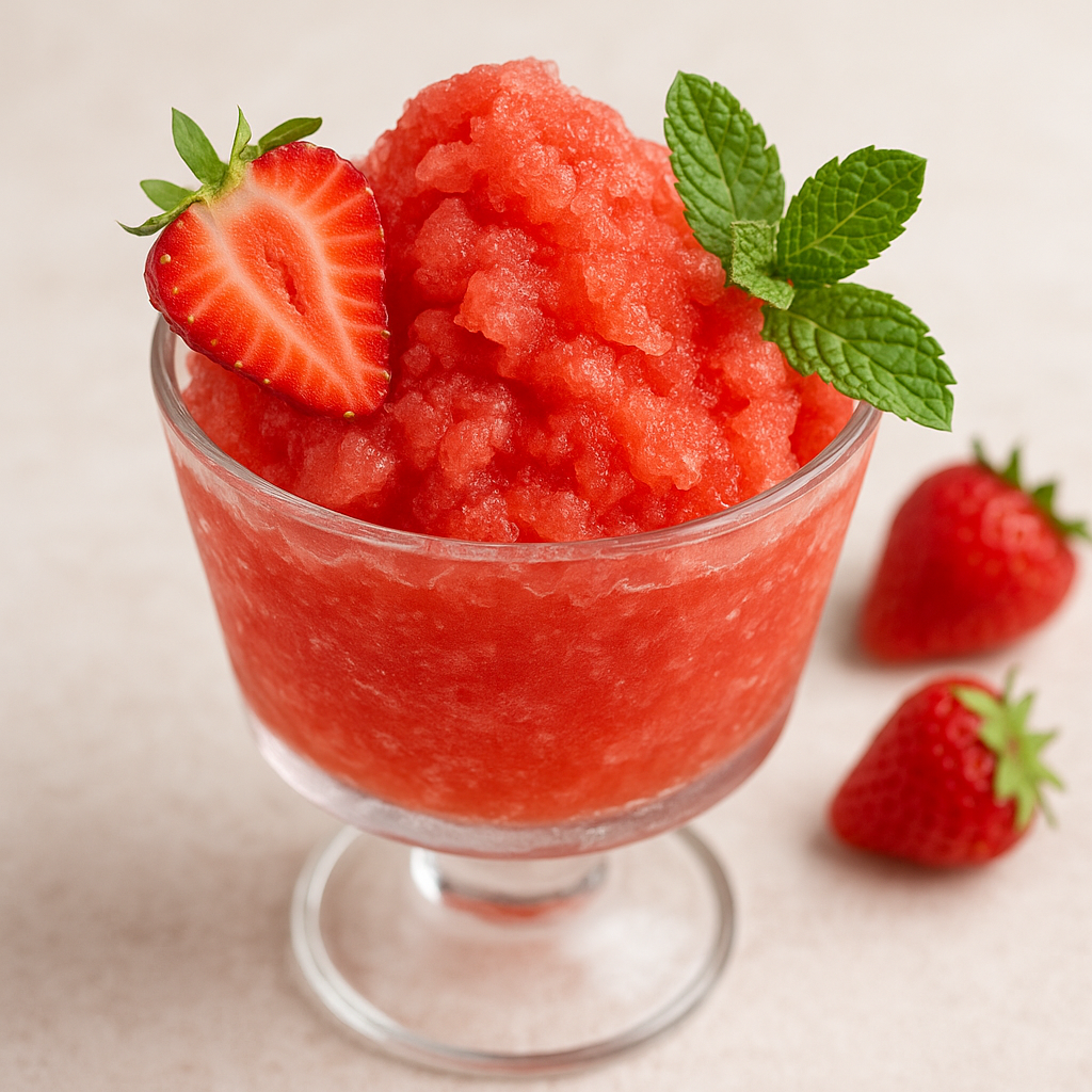 📌 Descrizione del piattoLa granita alla fragola è un dolce freddo al cucchiaio, tipico dell’estate siciliana. Fresca, fruttata e leggermente acidula, esalta il sapore naturale delle fragole mature. Si gusta a colazione con la classica brioche col tuppo o come dessert leggero e rinfrescante.