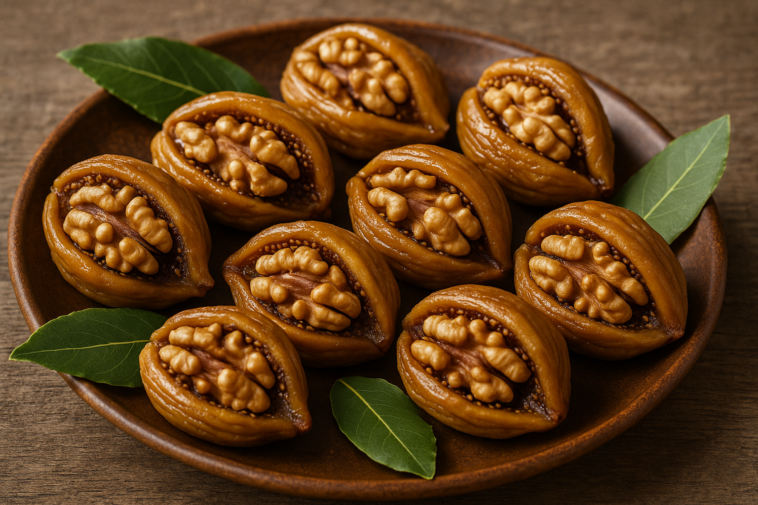 Descrizione storica:Dolce della tradizione contadina, i fichi secchi farciti erano tipici delle zone rurali del Sud, dove il fico rappresentava una fonte preziosa di zuccheri naturali. Dopo essere stati raccolti in estate, i fichi venivano lasciati essiccare al sole e poi conservati per l'inverno. Farcirli con noci o mandorle era un modo per arricchirli nei periodi di festa, come il Natale o le fiere patronali. L'alloro serviva sia a profumare che a conservare i fichi. Ancora oggi vengono preparati artigianalmente in molte famiglie pugliesi e lucane.