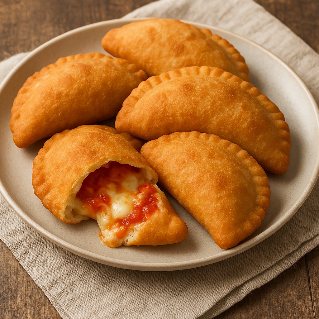 I Panzerotti abruzzesi sono piccole mezzelune di pasta lievitata, soffici e fragranti, tipicamente ripiene di pomodoro e mozzarella, ma spesso reinterpretate con prosciutto, salumi locali o formaggi tipici come la scamorza.