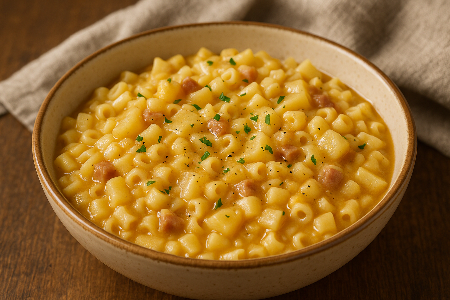 A base di ingredienti semplici – patate, pasta mista e formaggio filante – si trasforma in un piatto cremoso e saporito, spesso arricchito con pancetta o lardo per renderlo più sostanzioso.