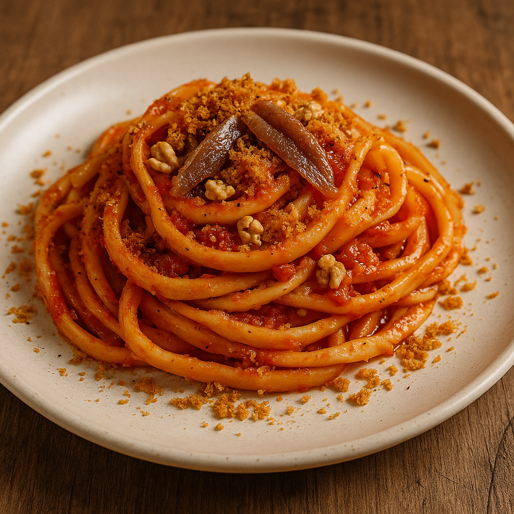 - Impiatta e completa con mollica tostata e un filo d’olio a crudo.