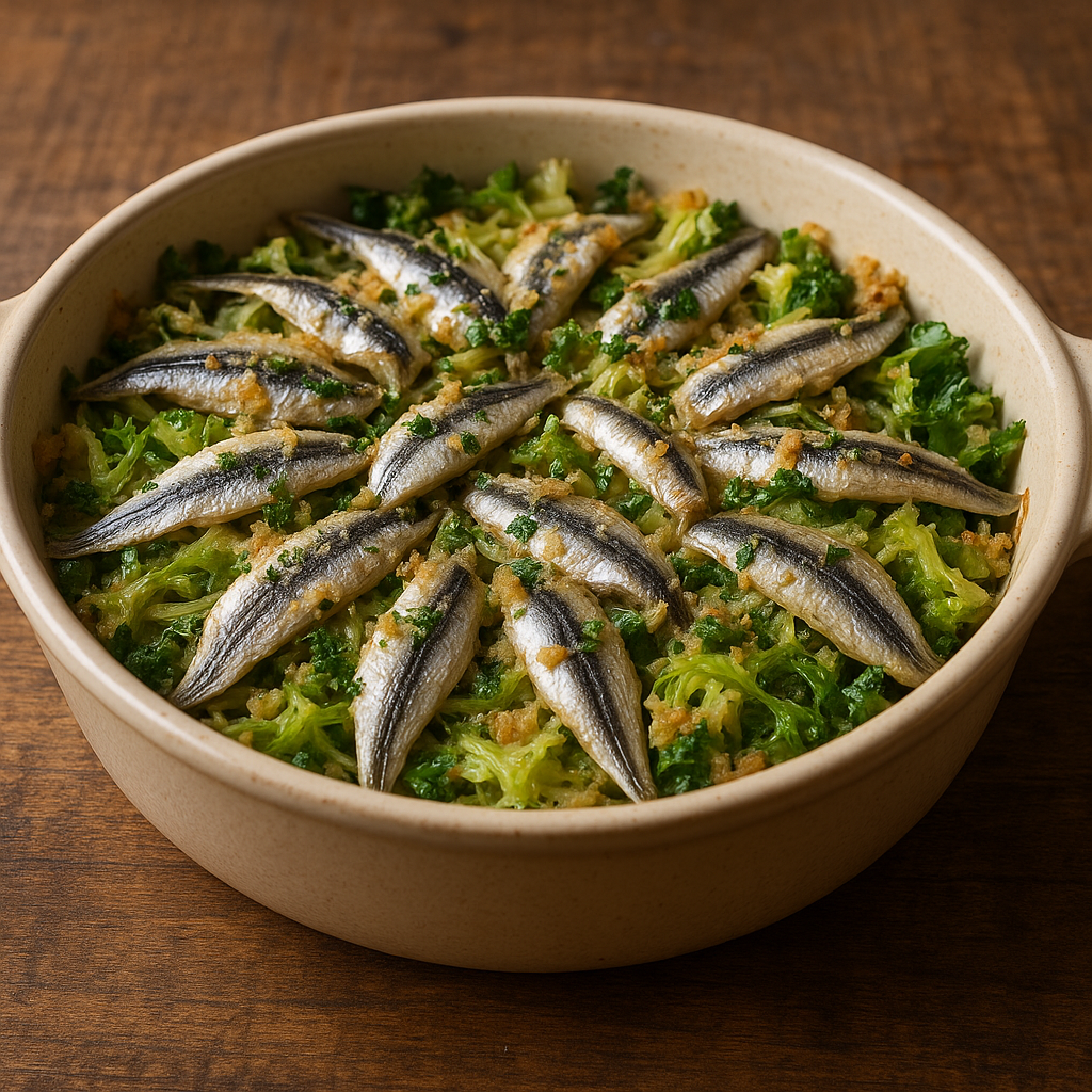 Gli Aliciotti con l’indivia sono una preparazione tipica della cucina popolare romana e laziale, dove le alici fresche vengono disposte a strati con indivia riccia, pangrattato e aromi mediterranei, quindi cotte in forno fino a ottenere una gratinatura dorata e profumata.
