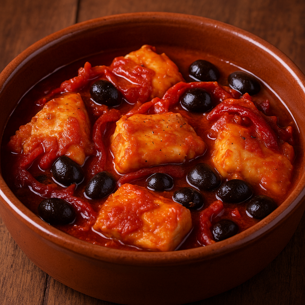 Il baccalà all’abruzzese è un secondo piatto saporito, preparato con baccalà dissalato, peperoni secchi, pomodoro e olive nere. L’incontro tra la sapidità del pesce conservato e la dolcezza dei peperoni secchi crea un equilibrio perfetto, arricchito dalla nota fruttata delle olive e dell’olio extravergine. È una ricetta di tradizione invernale e quaresimale, spesso servita durante le vigilie e le festività religiose.
