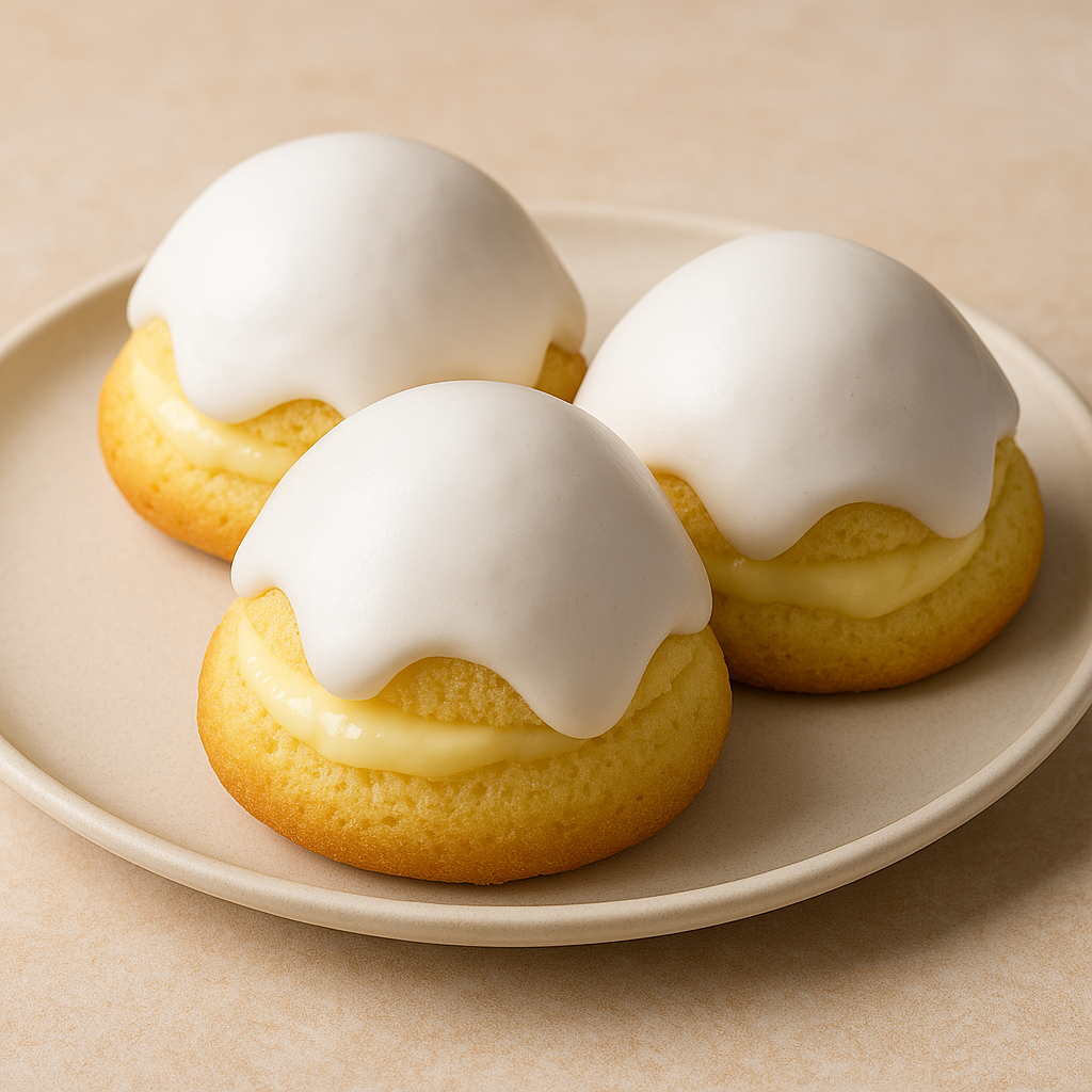 🍪 Dolci Sospiri (Tette delle Monache) Cupole soffici di pan di Spagna farcite con crema e ricoperte da glassa reale