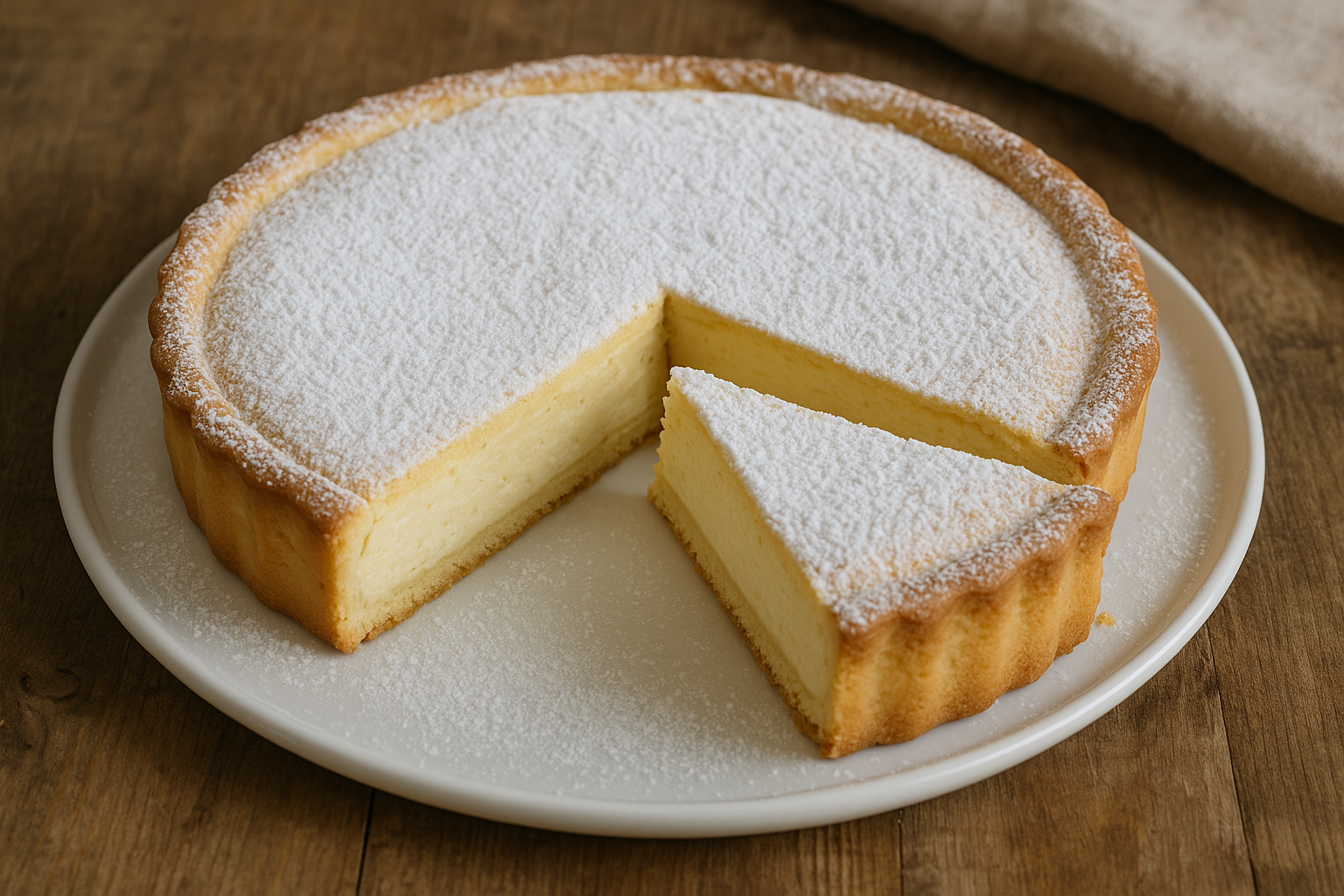 Dolce da forno con frolla e ripieno cremoso di ricotta di pecora