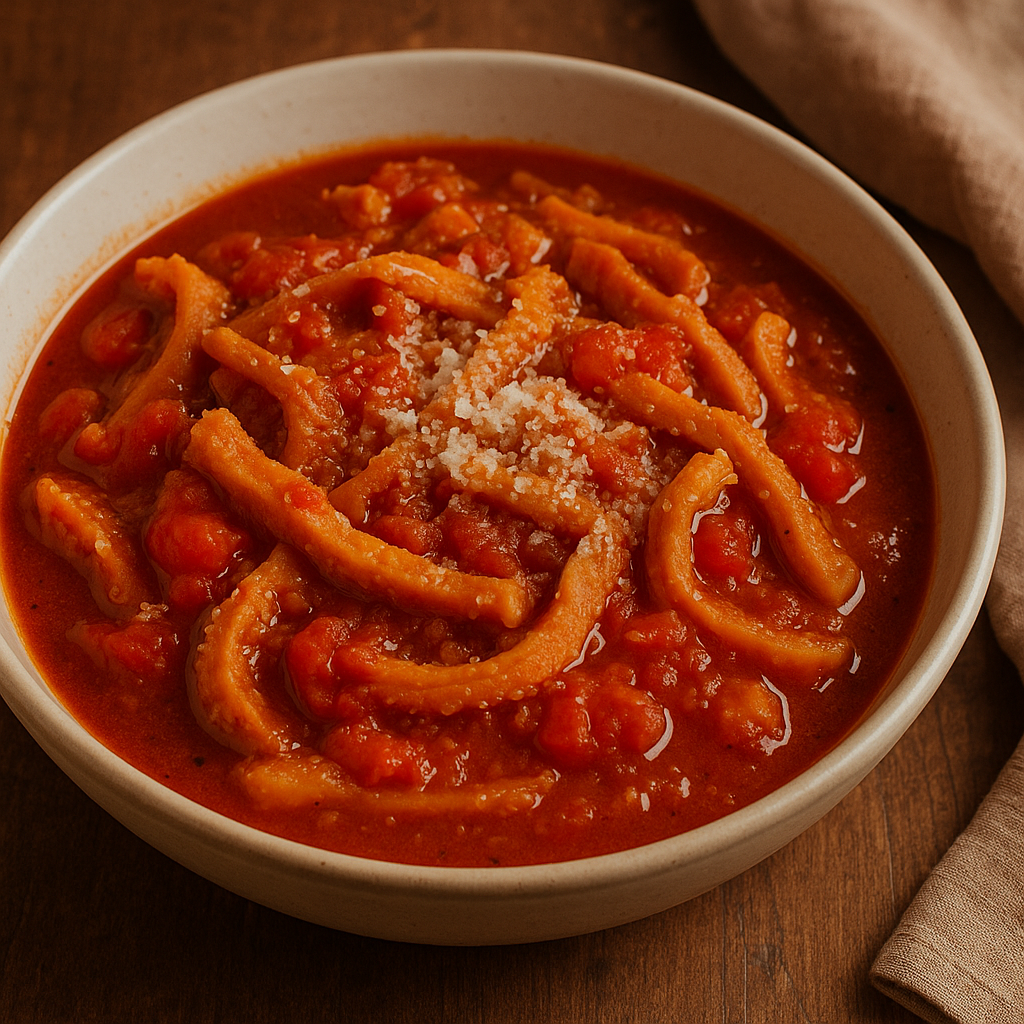 La Trippa alla molisana è un piatto contadino intenso e saporito, preparato con trippa di vitello stufata lentamente in un sugo di pomodoro, cipolla e pecorino grattugiato. In alcune varianti si aggiunge peperoncino per esaltare il gusto. Si tratta di una preparazione rustica, spesso consumata come piatto unico o secondo robusto, soprattutto nelle stagioni fredde. Ottima da servire con pane casereccio o polenta.