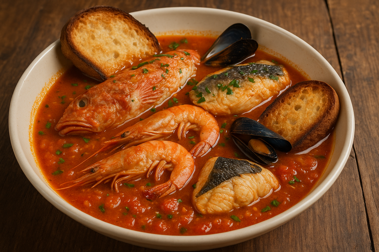 🐟 Zuppa di Pesce alla Brindisina Antico piatto di mare con misto di pesce, pomodoro e pane raffermo