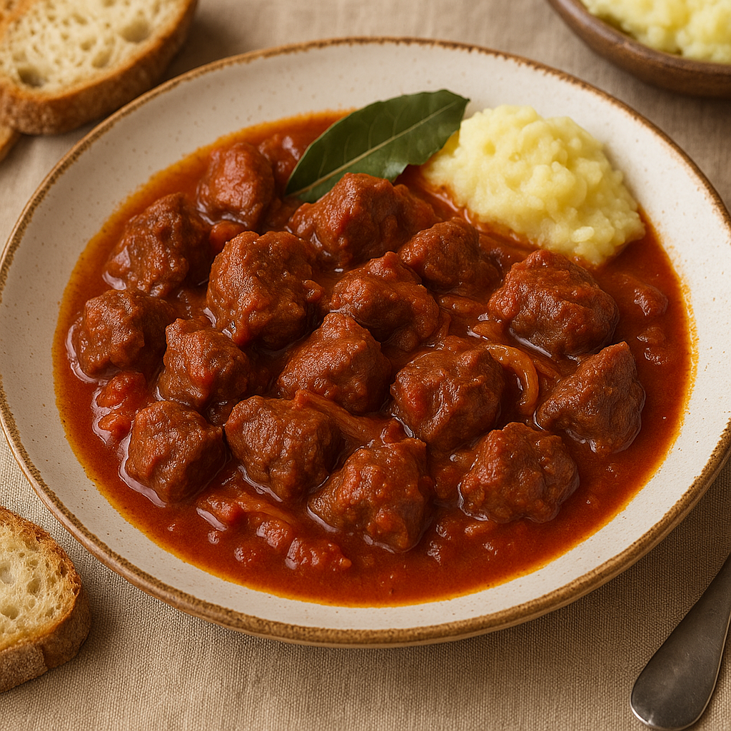 🐴 Spezzatino di Cavallo alla Barese Carne di cavallo brasata con cipolla, pomodoro e vino – sapore deciso e popolare