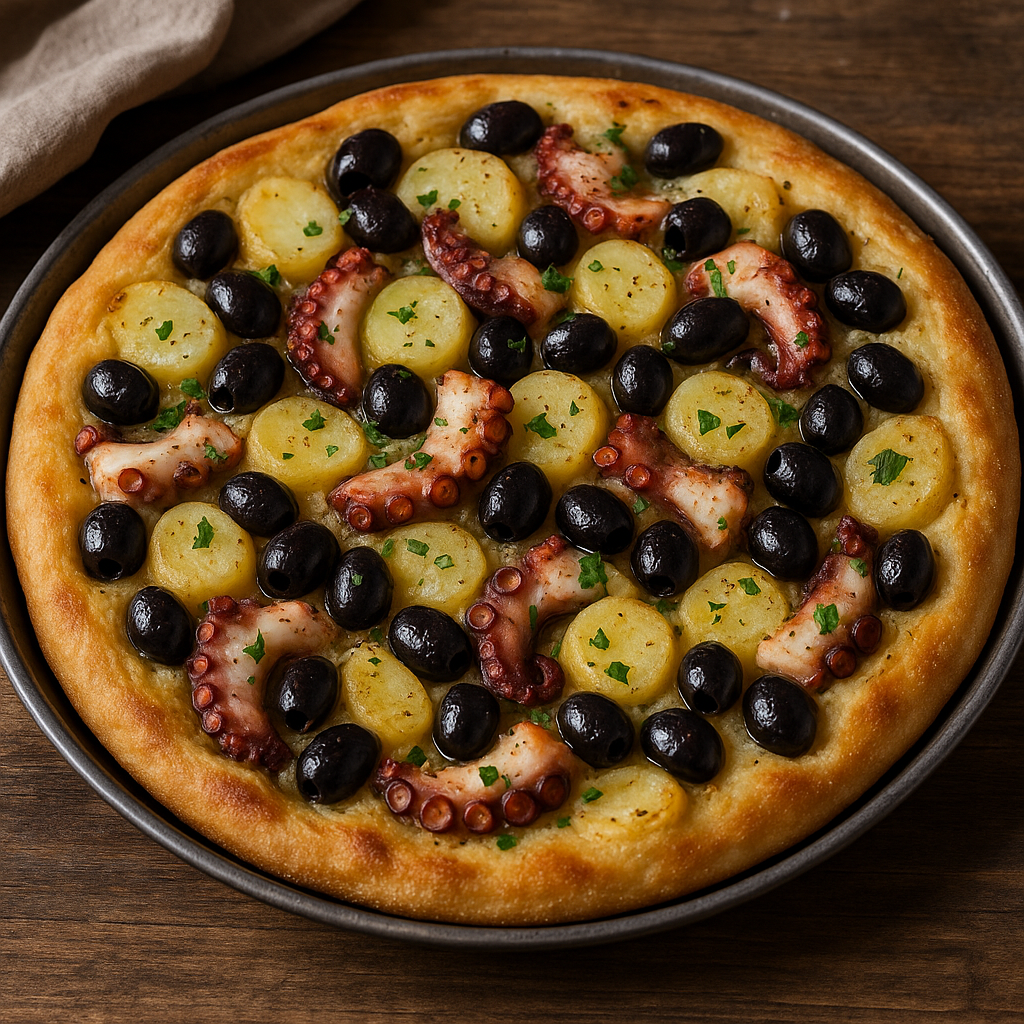 📌 Focaccia con Polpo, Patate e Olive Nere