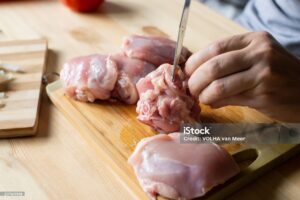 - Marinatura (facoltativa ma consigliata): Metti i pezzi di coniglio in acqua e aceto per almeno 1 ora per attenuare l’odore selvatico, poi asciugali bene.