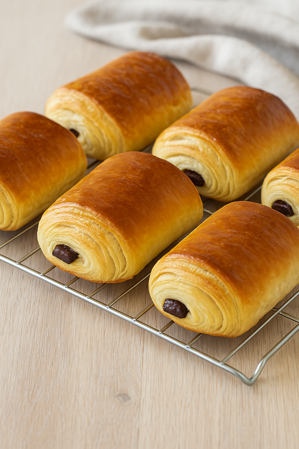 I saccottini al cioccolato sono soffici dolcetti di pasta brioche sfogliata, ripieni di barrette di cioccolato fondente o crema al cioccolato. Simili ai pain au chocolat francesi, sono ideali per la colazione o per una merenda golosa, ottimi sia caldi che a temperatura ambiente. Il loro profumo di burro e cioccolato li rende irresistibili.