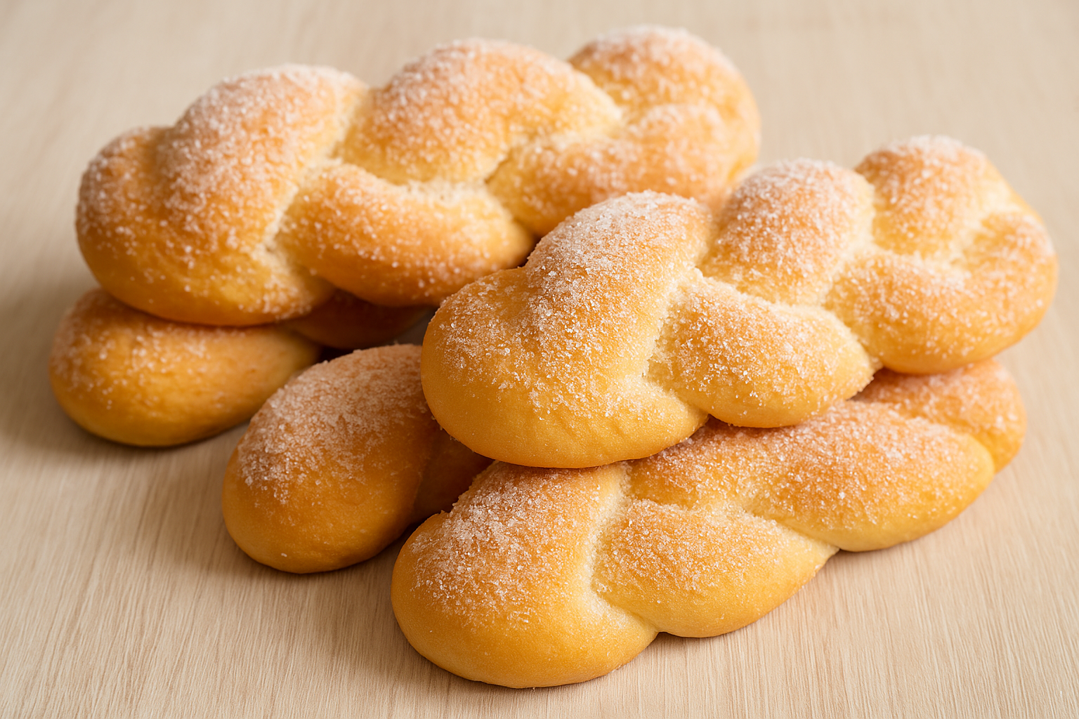 Le treccine zuccherate sono morbidi lievitati dolci dalla forma intrecciata, soffici e profumati, ricoperti da uno strato croccante di zucchero semolato. Tipiche delle colazioni siciliane al bar, spesso accompagnate da cappuccino o spremuta, si distinguono per il loro impasto ricco e fragrante.