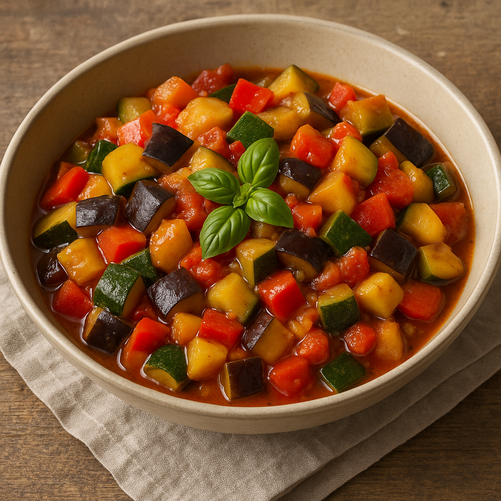 La cianfotta napoletana è uno stufato di verdure estive a base di melanzane, zucchine, peperoni, patate e pomodori, cotti lentamente in padella con olio extravergine d’oliva, aglio e basilico. Il risultato è un contorno o piatto unico ricco, colorato e profumato, ideale da servire tiepido o freddo, perfetto anche il giorno dopo.