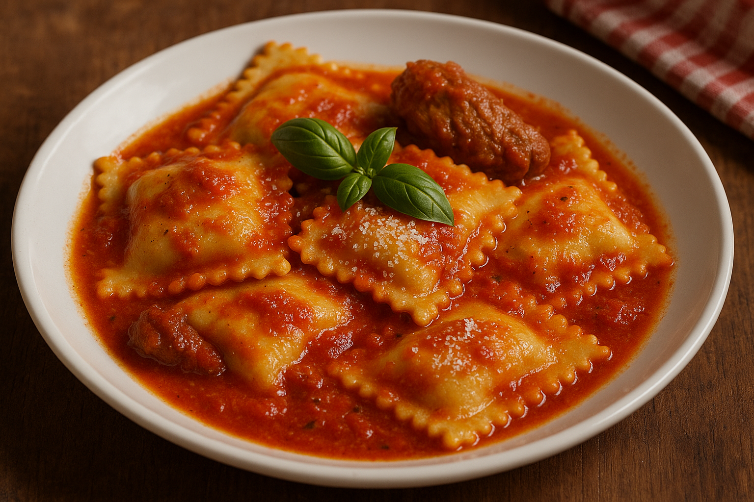 📖 DescrizioneI ravioli di ricotta al sugo di maiale sono un primo piatto tradizionale della cucina del Sud Italia, in particolare in Sicilia e Calabria. I ravioli sono ripieni di ricotta vaccina (o mista), spesso arricchita con erbe aromatiche e formaggio grattugiato. Vengono serviti con un sugo di carne di maiale (costine, salsiccia, o pezzi di spalla) cotto lentamente con passata di pomodoro, cipolla e aromi. Il risultato è un piatto ricco, saporito e rustico, perfetto per i pranzi della domenica o le ricorrenze.