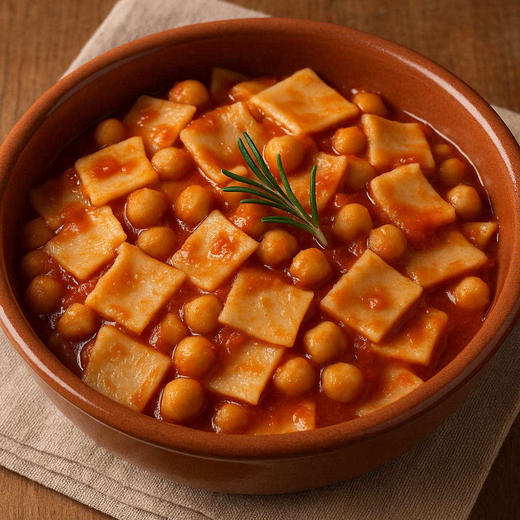 Sono preparate con un semplice impasto di acqua, farina e un pizzico di sale (senza uova) e vengono abbinate a legumi, in particolare ceci o lenticchie, per creare un piatto completo, nutriente e sostanzioso.