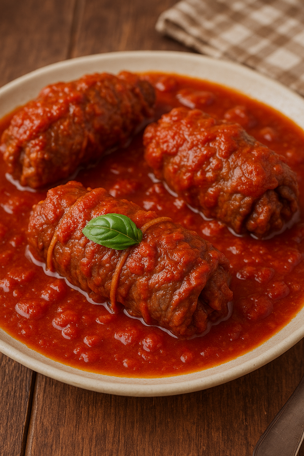 Nella cucina partenopea, le braciole sono una colonna portante dei pranzi festivi. Nonostante il nome, non sono braciole alla griglia, bensì involtini di carne cotti nel sugo per ore, secondo la tradizione del “ragù lento”, simbolo della domenica napoletana. L’aggiunta di uvetta e pinoli richiama l’influenza spagnola e araba che si riflette in molte preparazioni napoletane, combinando sapido e dolce con grande equilibrio.