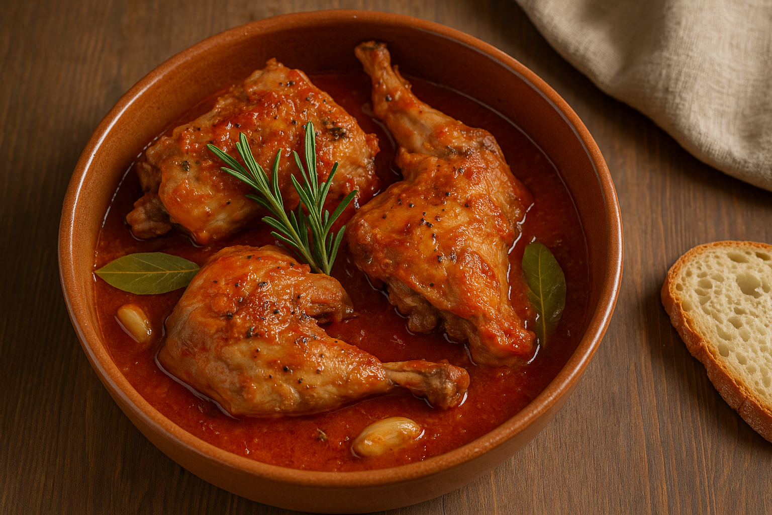 Il coniglio alla cacciatora abruzzese è un secondo piatto in umido, saporito e aromatico, in cui la carne tenera e magra del coniglio viene cotta lentamente con vino, pomodoro, erbe e spezie. La ricetta, pur condividendo il nome con varianti di altre regioni italiane, in Abruzzo presenta un gusto rustico e deciso, con l’uso di rosmarino, alloro e spesso un tocco di peperoncino.