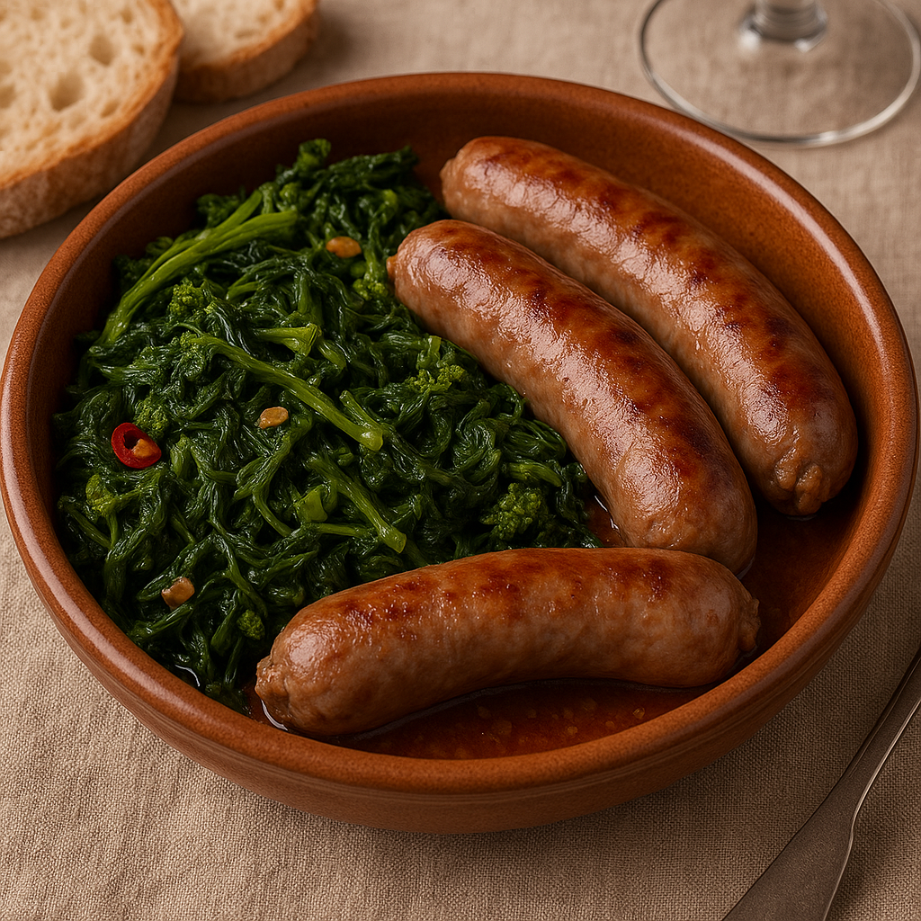 Un piatto simbolo della cucina napoletana, semplice e irresistibile: le salsicce fresche vengono cotte insieme ai friarielli, ovvero le cime di rapa tipiche della Campania, saltate in padella con aglio, olio e peperoncino. Il risultato è un contorno-secondo piatto robusto, amarognolo e sapido, perfetto da gustare con pane fresco o in un panino caldo.