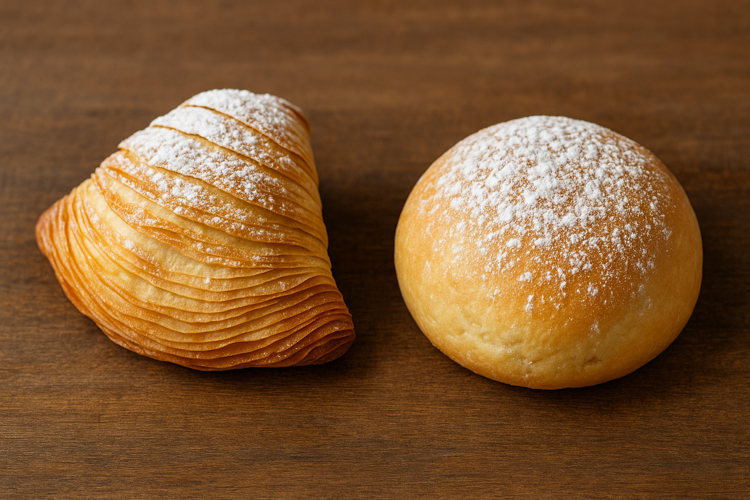 Entrambe sono farcite con una crema compatta a base di semolino, ricotta, uova, zucchero, scorza d’arancia candita e aromi come la cannella. All’assaggio, la sfogliatella conquista con il contrasto tra l’involucro e la morbidezza del ripieno.
