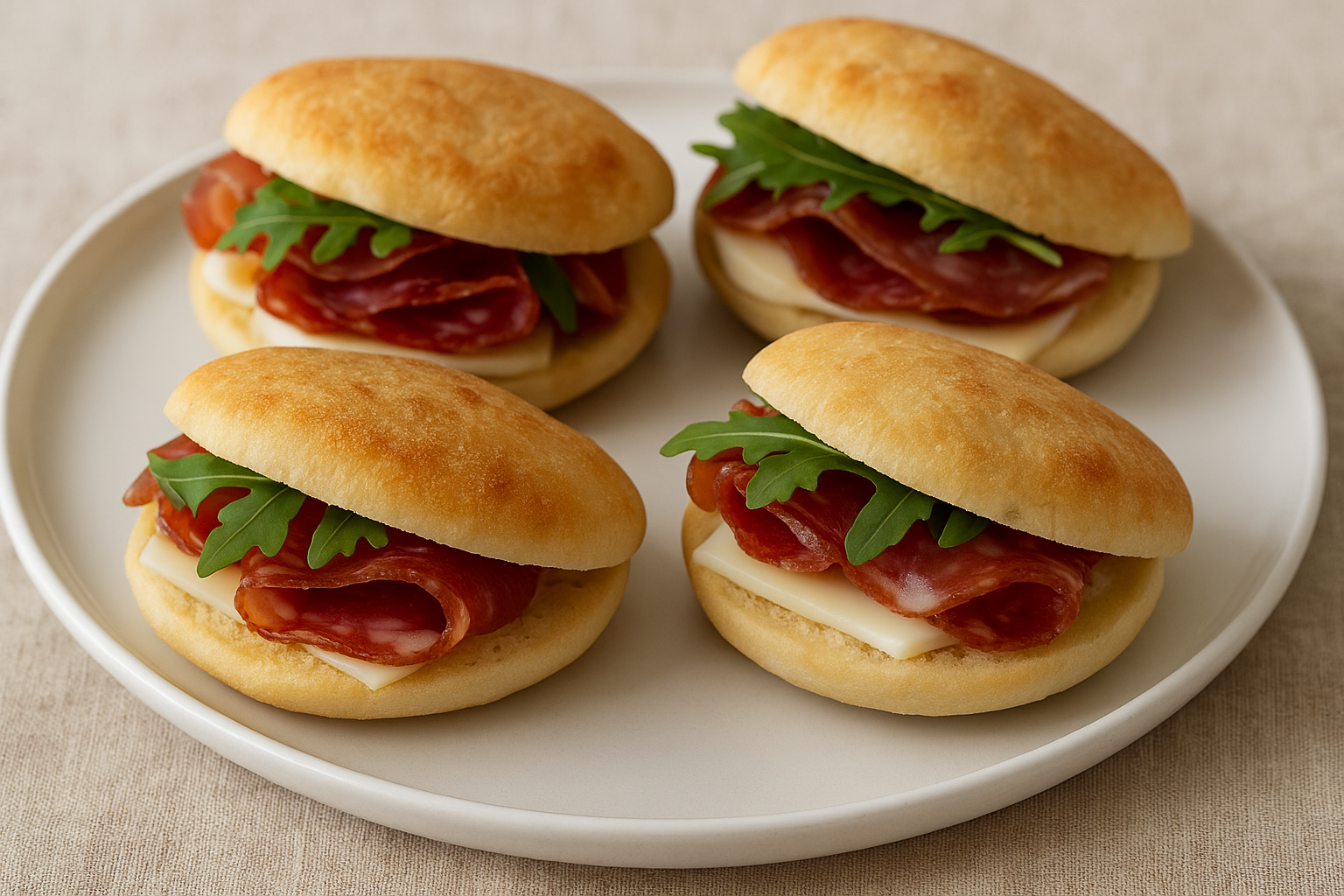 Le focaccine farcite alla laziale sono piccole delizie preparate con impasto di pizza bianca o all’olio, farcite con salumi locali e formaggi tipici del territorio. Sono perfette da servire a temperatura ambiente, ideali per buffet rustici, spuntini o accompagnamento all’aperitivo. La combinazione più classica prevede coppiette romane o lonza stagionata con pecorino romano, caciotta, o ricotta salata.