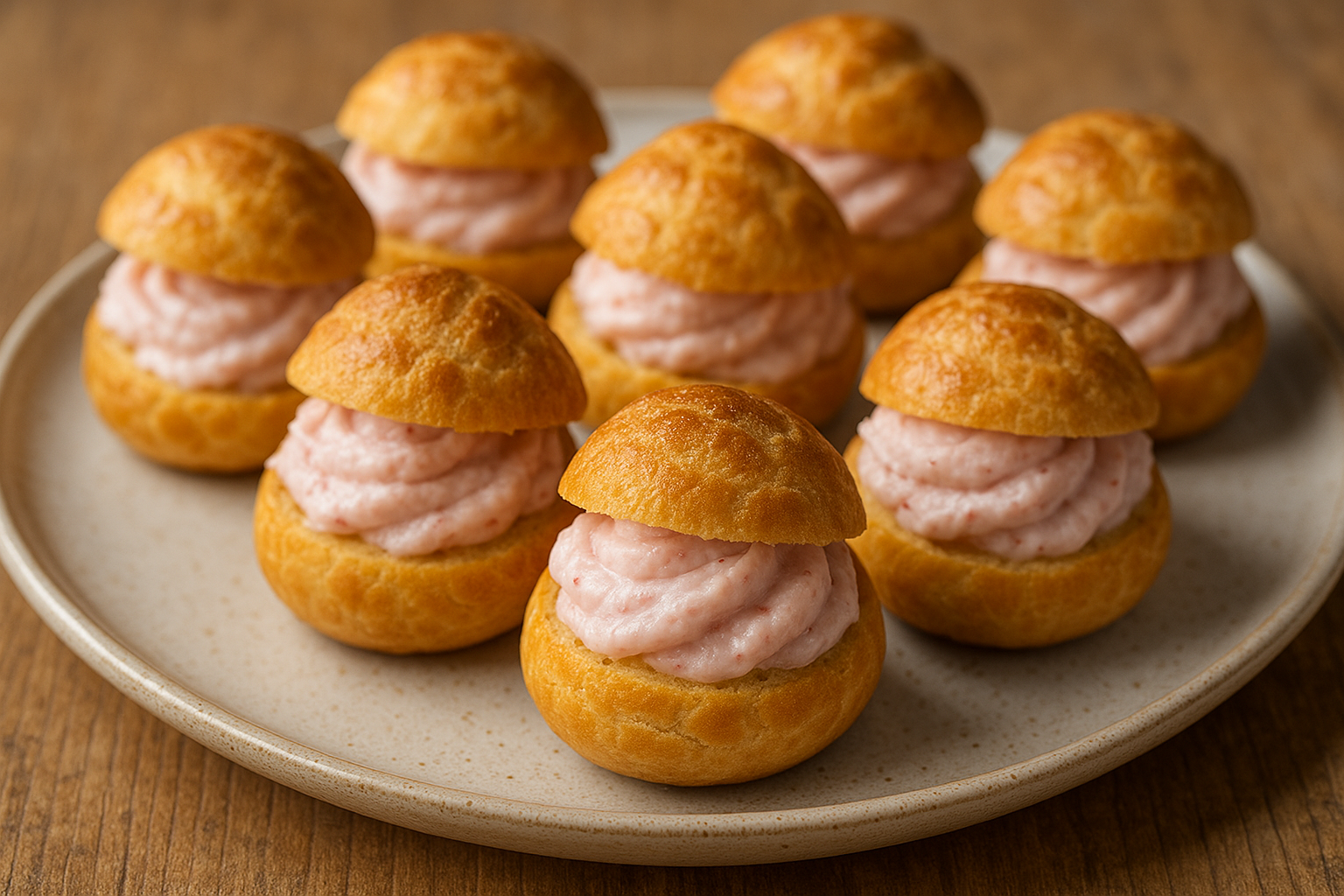 I bignè salati al prosciutto di San Daniele sono piccoli bocconcini di pasta choux, tipicamente usata per preparazioni dolci, ma qui reinterpretata in chiave salata. Vengono farciti con una mousse cremosa a base di prosciutto di San Daniele DOP e formaggio fresco spalmabile o ricotta, talvolta arricchita con panna montata per una consistenza più soffice.