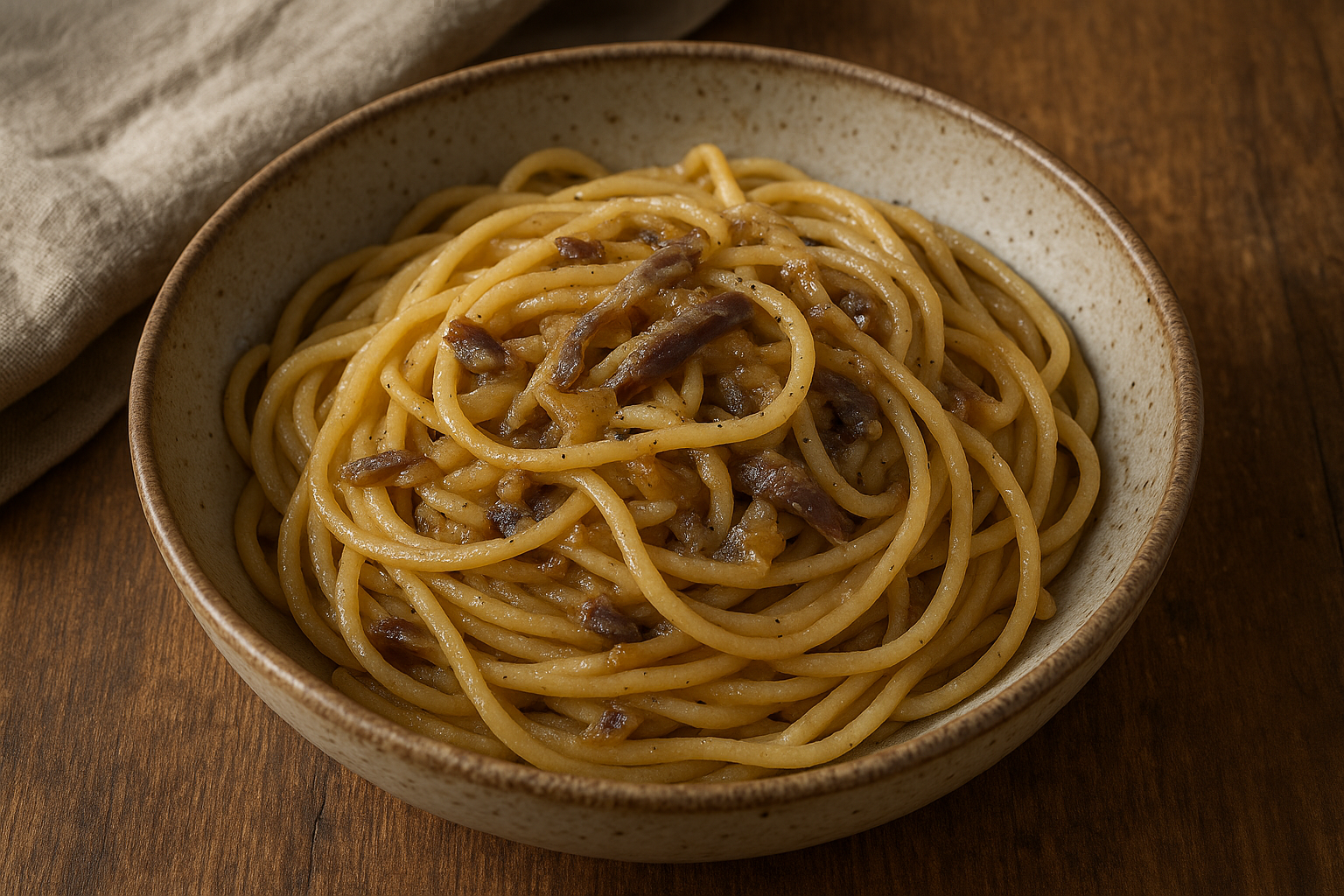 I Bigoli in salsa di pesce sono la variante friulana di un piatto iconico della tradizione veneta, qui reinterpretato con le materie prime locali e il gusto tipico delle zone di mare e laguna del Friuli Venezia Giulia.
