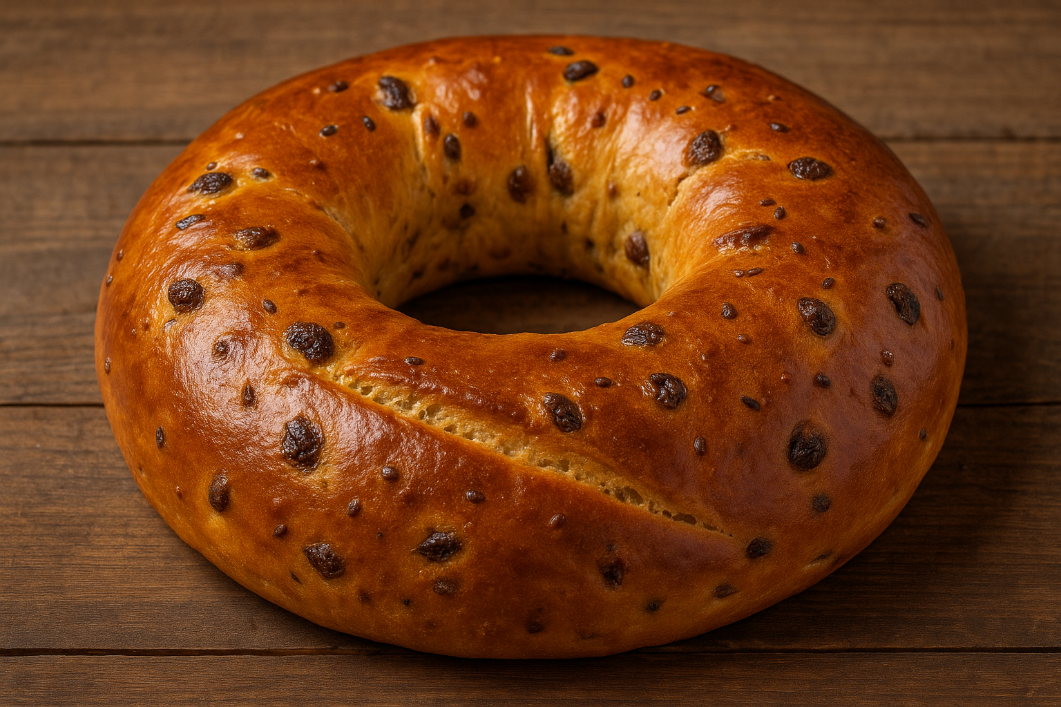 Il Buccellato di Lucca è un dolce lievitato dalla tipica forma a ciambella o corona. L’impasto, simile a quello del pane dolce, è arricchito con uvetta e semi di anice, che gli conferiscono il suo profumo caratteristico.