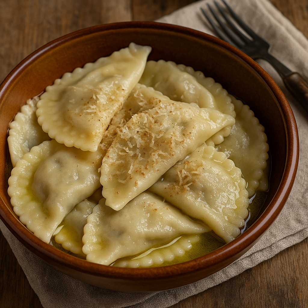 - Cottura: lessare i ravioli in acqua salata bollente per 3–4 minuti.