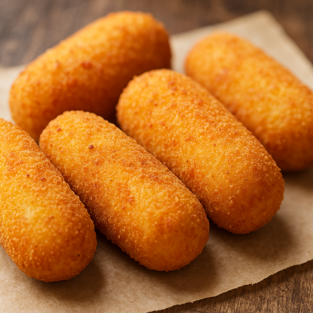 I crocchè sono nati nel Sud Italia sotto l’influsso della cucina francese durante il periodo borbonico. Derivano infatti dalle “croquettes” francesi, adattate però al gusto e agli ingredienti locali. A Napoli sono diventati un simbolo della friggitoria tradizionale, presenti nei cuoppi insieme ad arancini, frittatine di pasta e verdure fritte. Il termine “panzarotto” deriva dal dialettale “panzarella” (piccola pancia), per la forma tondeggiante che assumono durante la cottura.