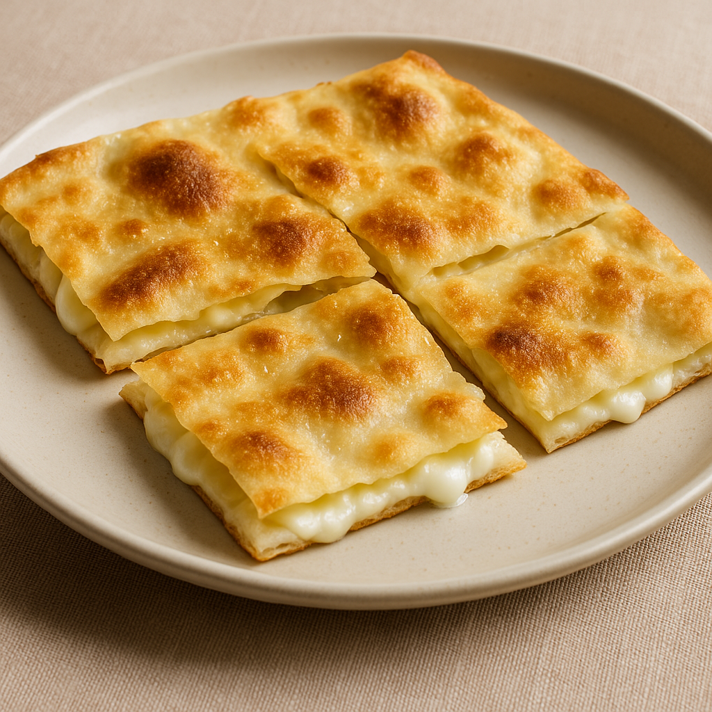 “Prendi la farina, impastala con acqua e olio, e stendila sottile come un velo. Poni tra due sfoglie il cacio fresco e metti in forno a gran calore, ché presto sia cotta e fragrante.”