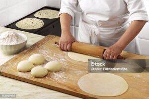 - In una ciotola, impastare la farina con acqua, olio e un pizzico di sale fino a ottenere un impasto liscio ed elastico.