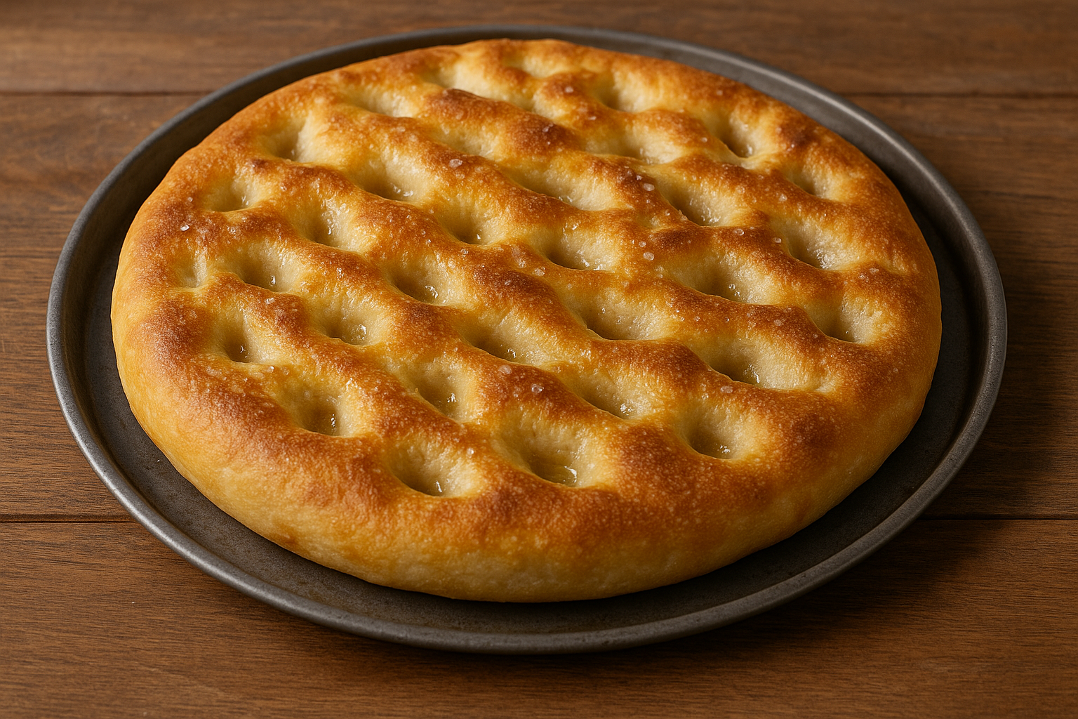 - Stendere delicatamente l’impasto in una teglia unta, creando le tipiche fossette con le dita.