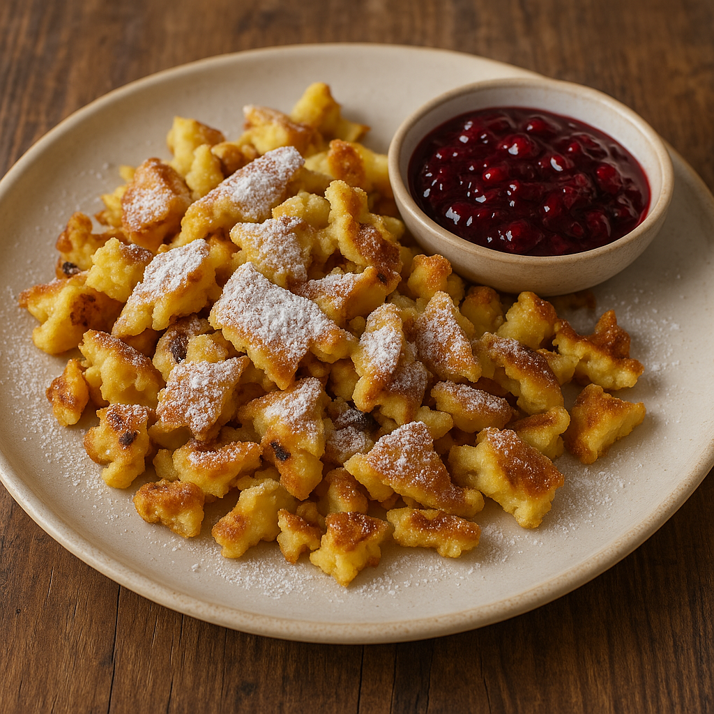 Il nome significa “frittata dell’Imperatore”: secondo la tradizione, il dolce fu inventato nel XIX secolo per l’imperatore austriaco Francesco Giuseppe I (Kaiser).
