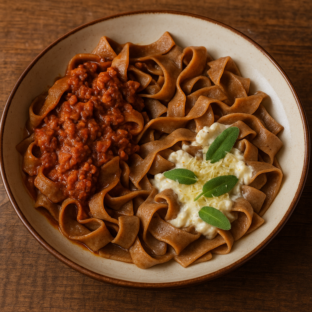 Le lasagne bastarde sono una pasta fresca tipica delle zone montane, preparata con un impasto che unisce farina di castagne e farina di grano tenero. Il nome “bastarde” deriva proprio dal “miscuglio” delle due farine. Queste lasagne si servono tradizionalmente con sughi di carne ricchi (cacciagione o ragù di maiale), ma nelle versioni più povere venivano condite semplicemente con ricotta fresca, burro e salvia o pecorino.