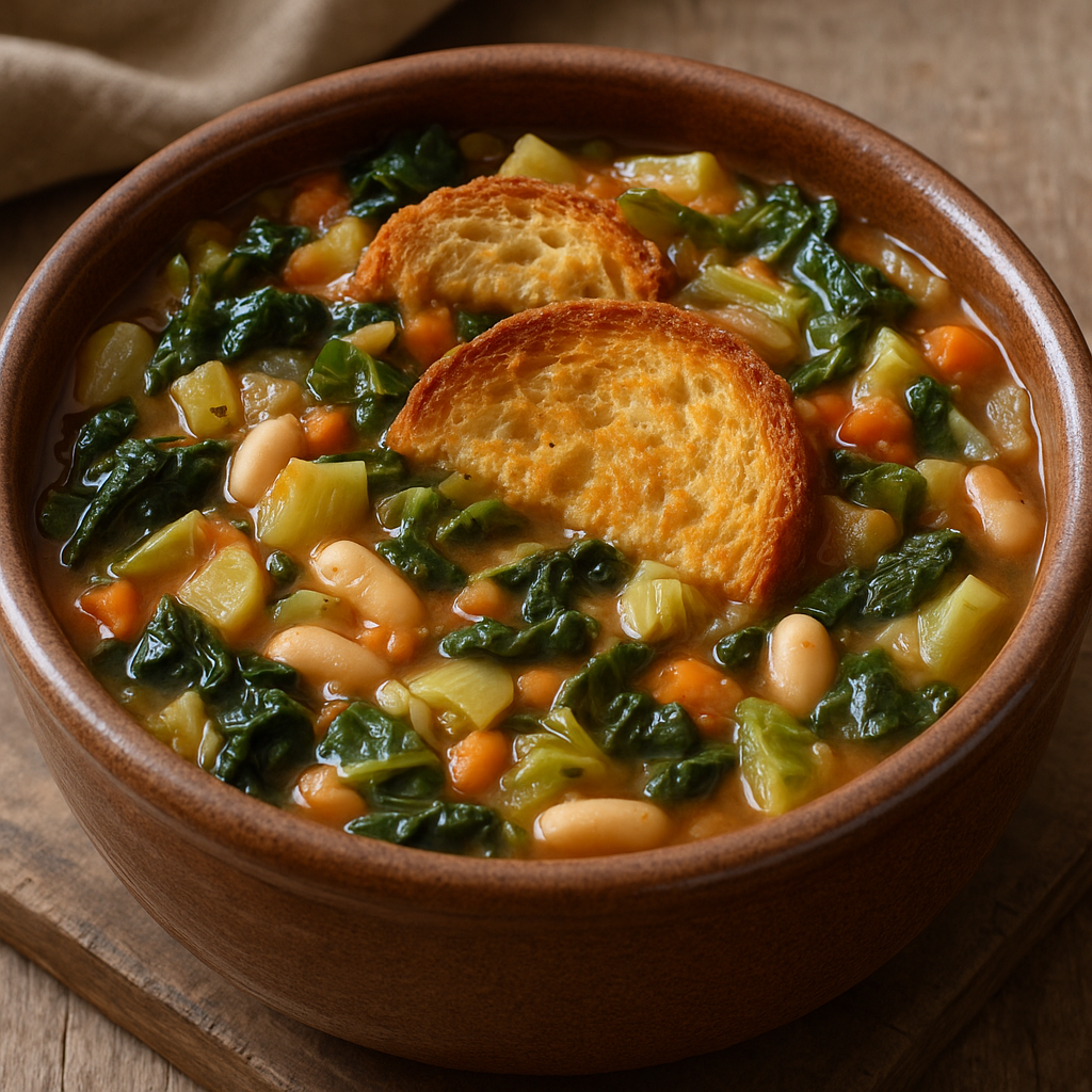 “Si pongano cavolo nero, fagiuoli e altre erbe in pignatta con acqua e sale. Indi vi si aggiunga pane vecchio a fette, e si lasci bollire. Non si consumi troppo, ché deve restar minestra, non pappa.”