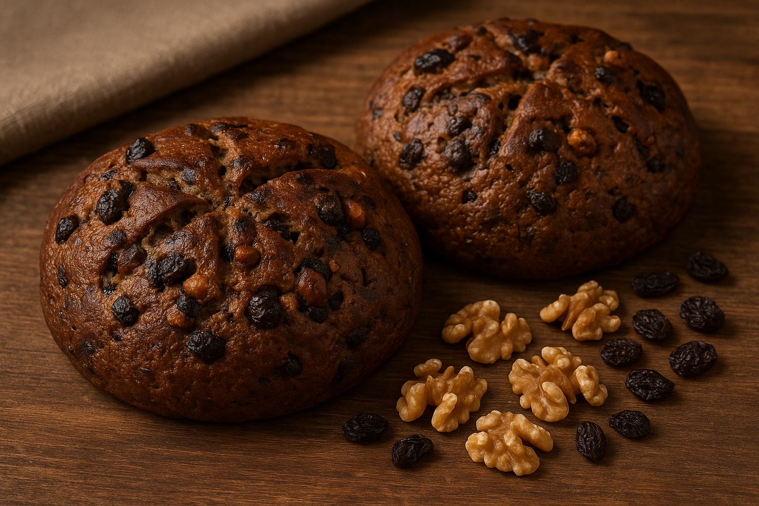 Il Pan co’ Santi è un pane dolce lievitato, arricchito con noci, uvetta e pepe nero, dalla forma rustica e dalla crosta dorata.