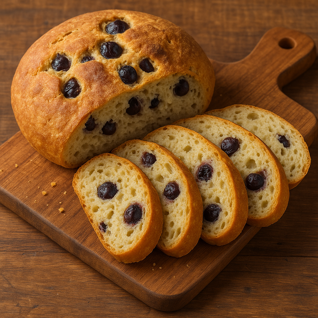 “Si impasti la farina con acqua, lievito e sale; vi si pongano chicchi d’uva ben mondi. Si formi il pane e si lasci levar. Indi si cuocia al forno e si serva con cacio o prosciutto.”