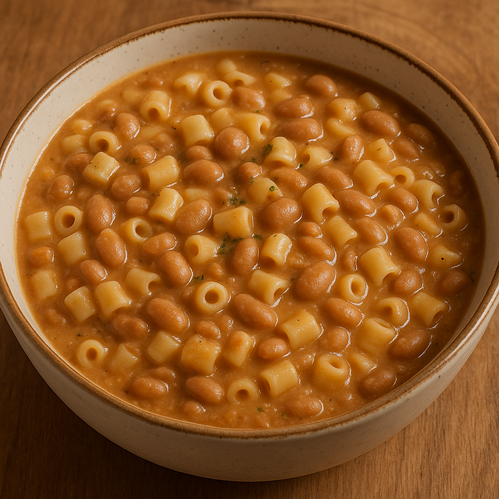 La Pasta e fagioli alla veneta è una minestra cremosa, avvolgente e nutriente, tipica della tradizione rurale. Preparata con fagioli borlotti (spesso secchi e messi in ammollo), pasta corta o maltagliati e arricchita con soffritto, lardo o cotiche, rappresenta un piatto sostanzioso e conviviale. La sua consistenza è densa, quasi vellutata, e il gusto intenso grazie alla lunga cottura lenta.