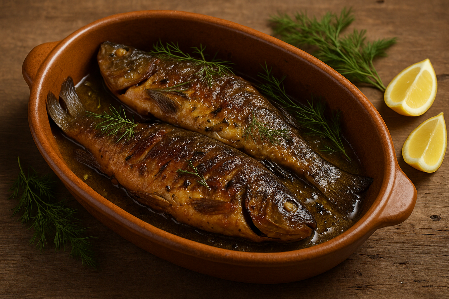 La tinca in porchetta è una specialità tipica delle aree lacustri umbre, in particolare del Lago Trasimeno. La preparazione prende il nome dalla celebre porchetta perché utilizza gli stessi aromi: finocchietto selvatico, aglio, pepe e rosmarino 🌿🧄. Questo piatto nasce dall’ingegno dei pescatori che, disponendo più facilmente di pesce che di carne, adattarono al lago la ricetta della porchetta tradizionale. Il risultato è un piatto rustico, profumato e sorprendentemente saporito, servito durante feste popolari e banchetti.
