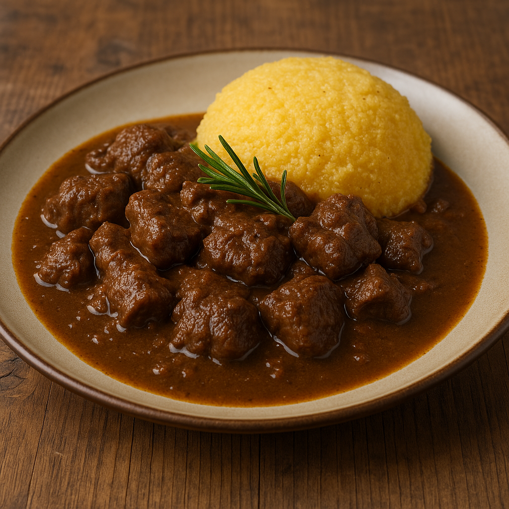- Contorno: polenta gialla morbida, patate lesse o crauti stufati.