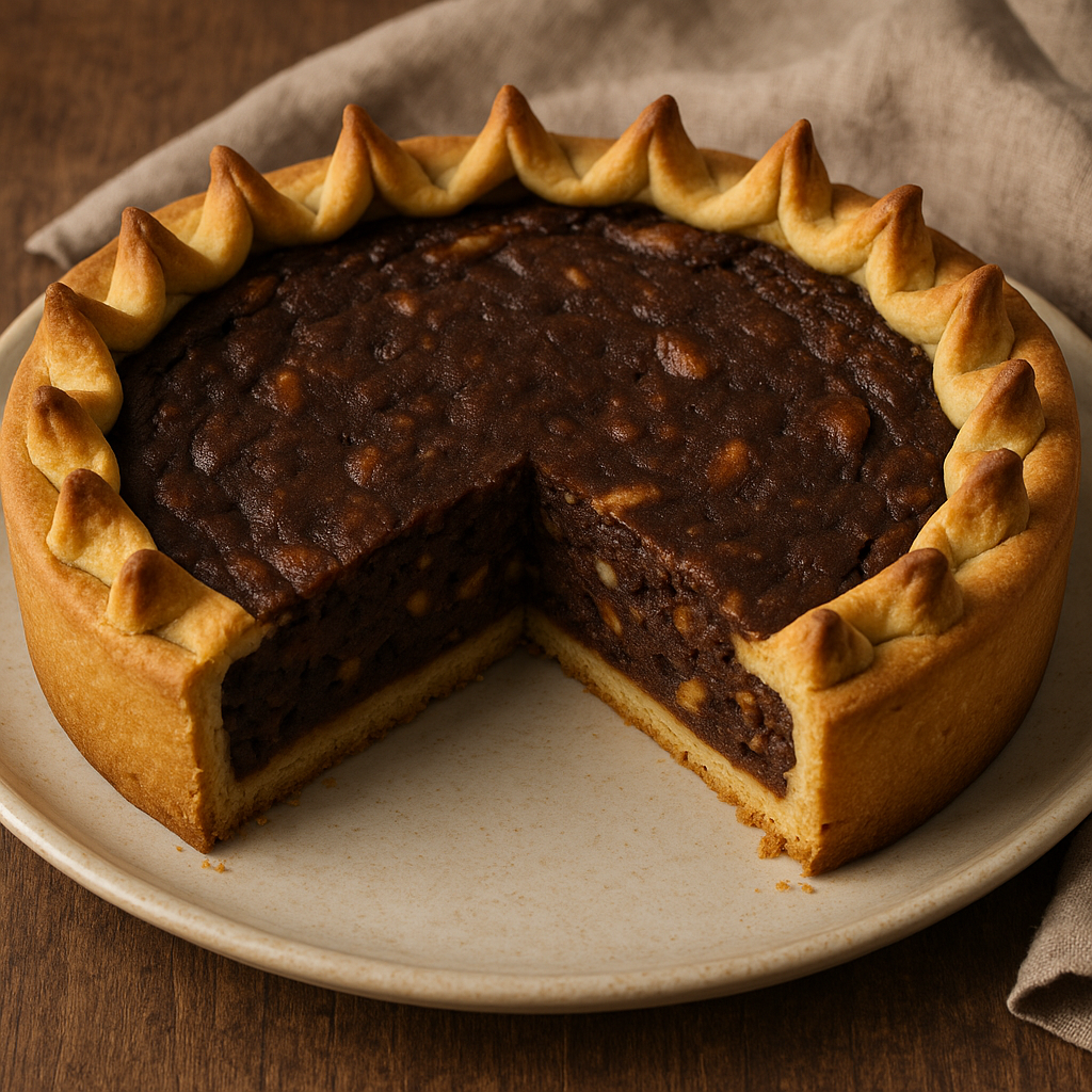 È caratterizzata da un ripieno ricco e scuro a base di cioccolato, riso lessato, canditi e frutta secca, racchiuso da una pasta dolce e decorata con i celebri “bischeri”, ossia i tipici riccioli di pasta arrotolati verso l’interno sul bordo della torta.