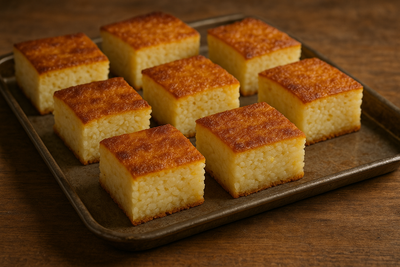 Dolce a base di riso, latte, uova e scorza di limone, servito a fette quadrate