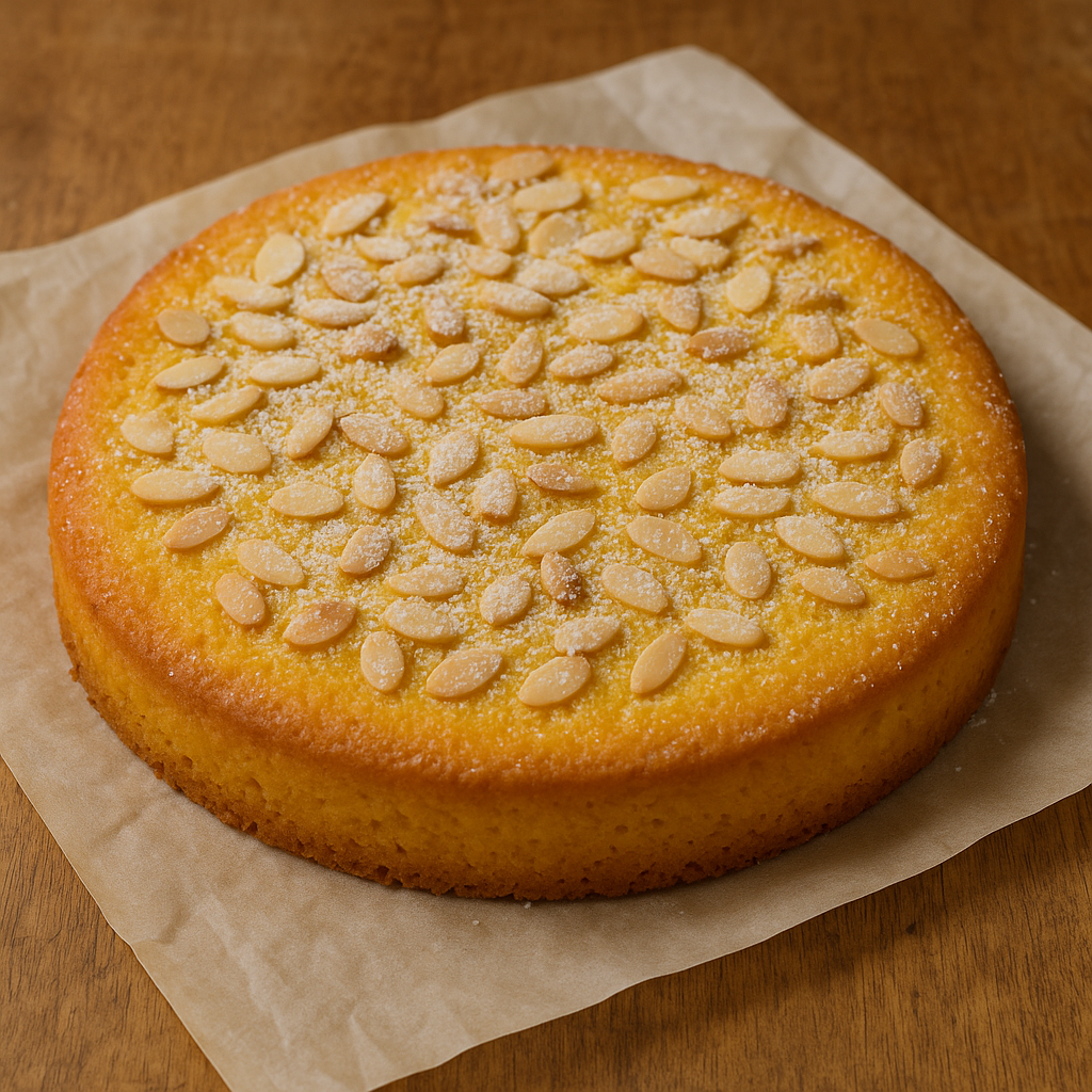 La superficie è cosparsa di mandorle intere o a lamelle che, in cottura, diventano dorate e croccanti. È un dolce rustico ma elegante, tipico esempio della pasticceria casalinga toscana.