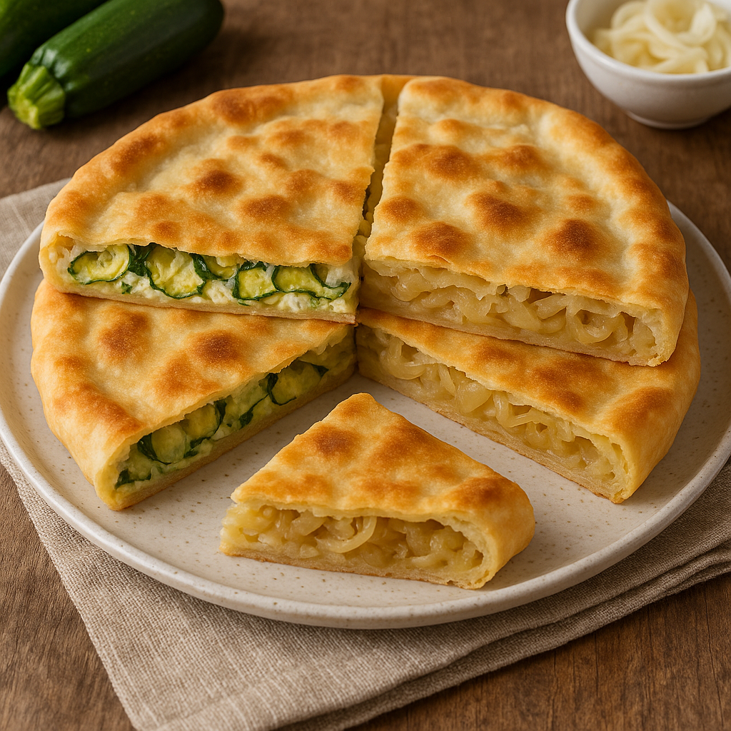 “Fa la pasta sottile con farina e oglio, e ponla in tegghia; riempi di cipolle cotte, o di zucchini, o di patate e carciofi con cacio e ova. Copri con altra sfoglia e cuoci a forno finché ben soda e dorata.”