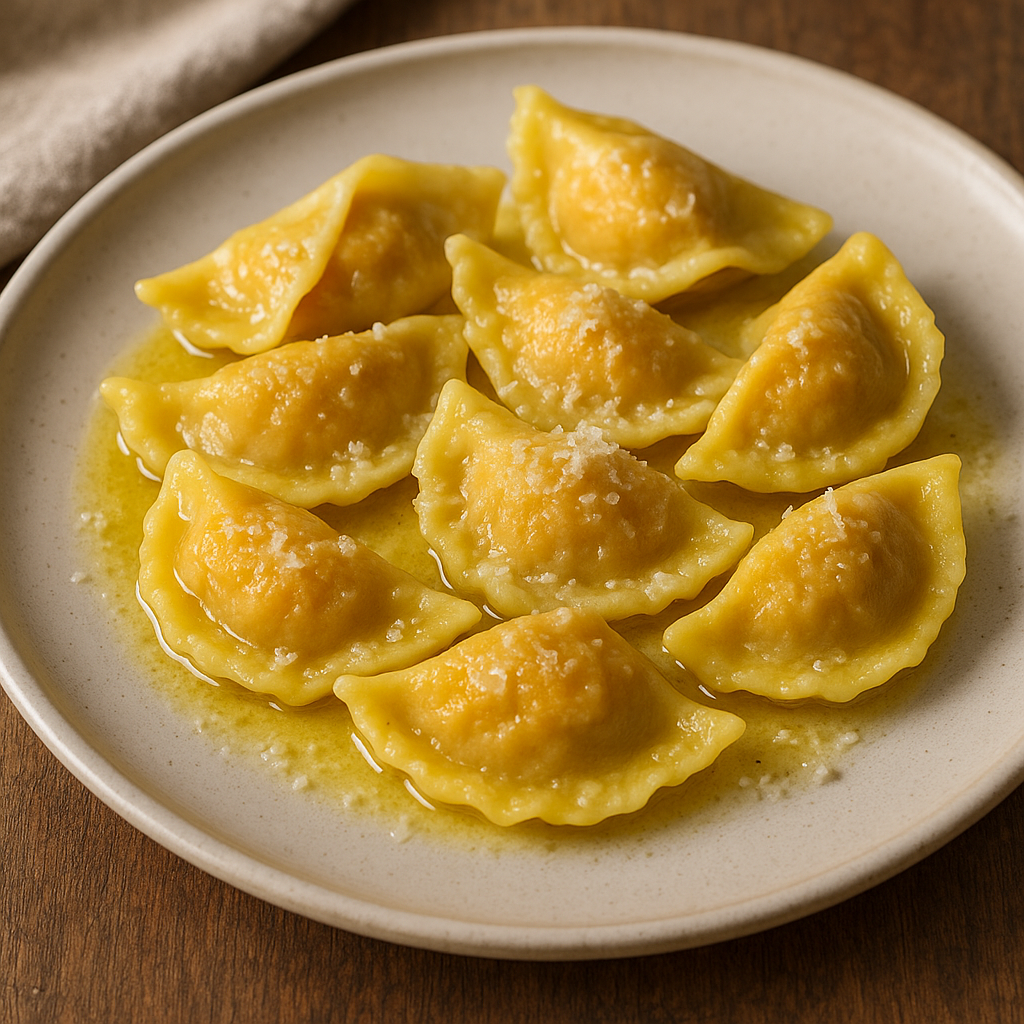 Specialità della bassa emiliana (Reggio e Parma), ripieni di zucca, mostarda e amaretti, conditi con burro fuso e Parmigiano