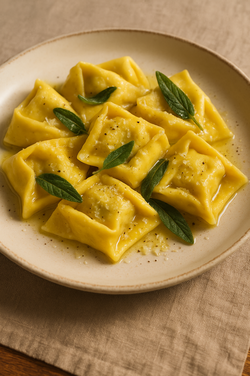 I tortelloni sono un formato di pasta fresca all’uovo tipico dell’Emilia-Romagna. A differenza dei tortellini, sono più grandi e il loro ripieno è spesso vegetariano, tradizionalmente a base di ricotta fresca ed erbette (spinaci o bietole). Si distinguono per la morbidezza del ripieno e per il condimento semplice ma raffinato: burro fuso aromatizzato alla salvia e una spolverata di Parmigiano Reggiano.