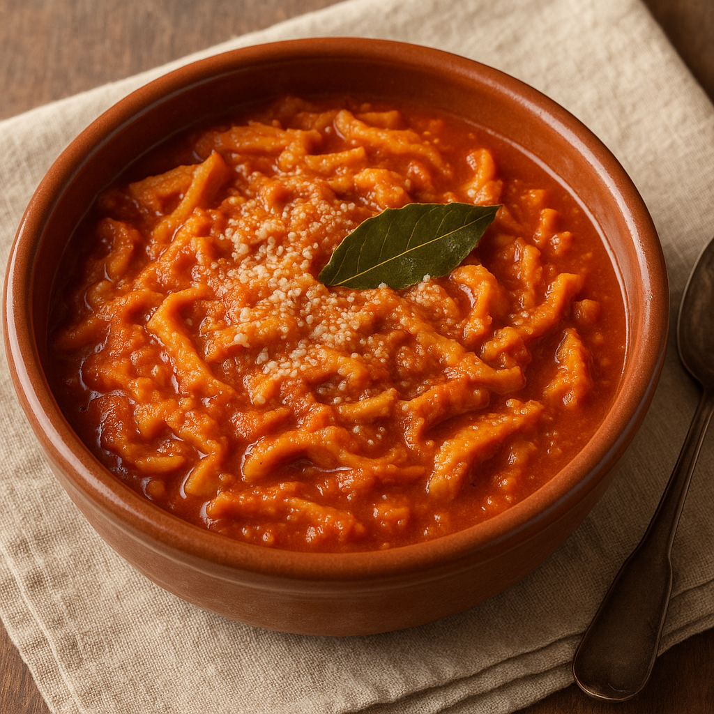 La trippa alla parmigiana è una ricetta antica dell’Emilia, legata soprattutto alla cucina contadina e popolare di Parma e dintorni. La trippa, ingrediente umile ma sostanzioso, veniva preparata nelle grandi occasioni, spesso la domenica o durante le fiere di paese.La sua versione alla parmigiana si caratterizza per la lunga cottura in umido con pomodoro e aromi, arricchita generosamente da Parmigiano Reggiano grattugiato, che le conferisce cremosità e sapore intenso.