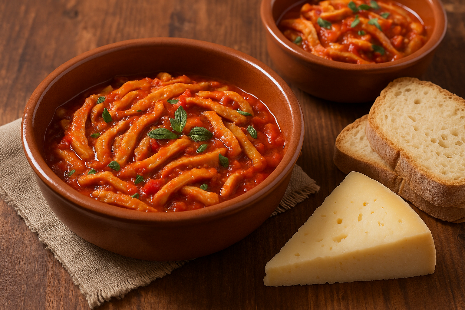 La trippa alla perugina è una specialità tipica della cucina povera umbra, in particolare della zona di Perugia. Preparata con la trippa di vitello cucinata lentamente in salsa di pomodoro, veniva arricchita con pecorino grattugiato e foglie di menta fresca 🌿, che le conferiscono un gusto fresco e inconfondibile. Questo piatto, nato come pietanza contadina, veniva servito nei giorni di festa e nelle osterie popolari, diventando simbolo di convivialità e di legame con le tradizioni pastorali umbre.